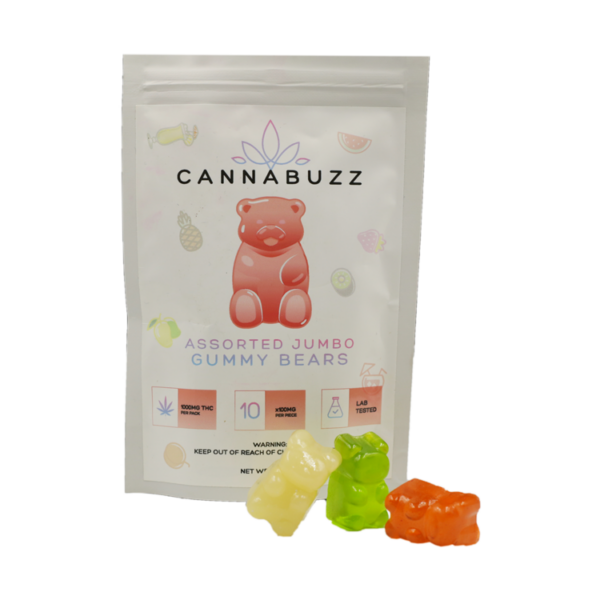 SKU: cannabuzz-assorted-jumbo-gummy-bears-1000mg-thc Category: